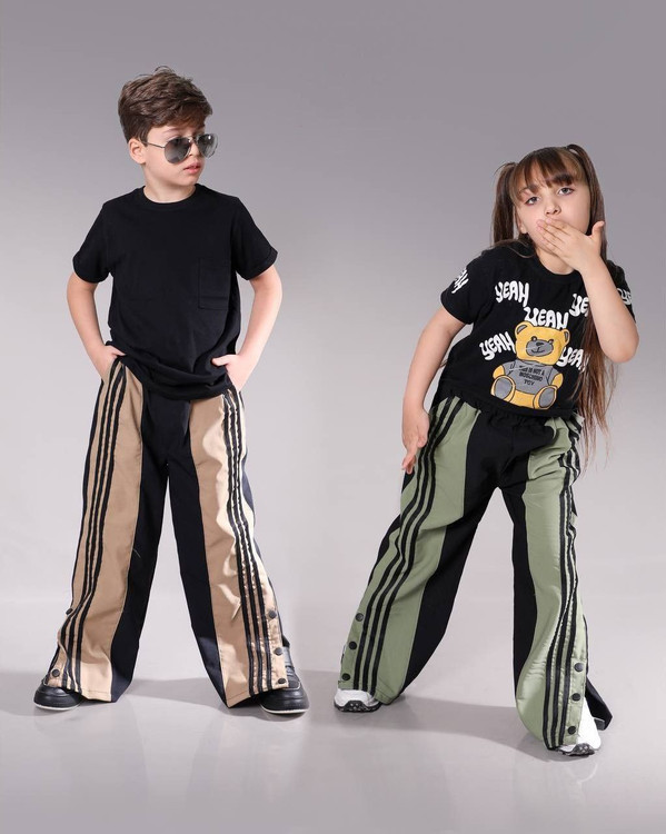 شلوار بگ دختر و پسر سه خط بنگال پشت پنبه پایین دکمه
