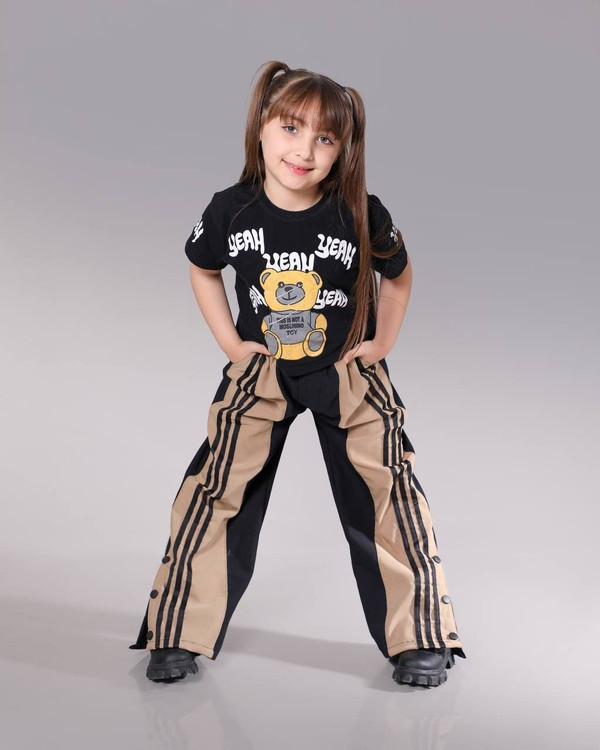 👖شلوار مام دختر و پسر سه خط بنگال پشت پنبه پایین دکمه💎