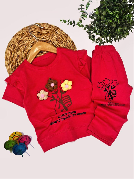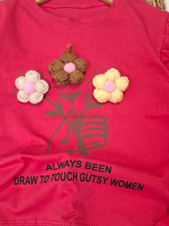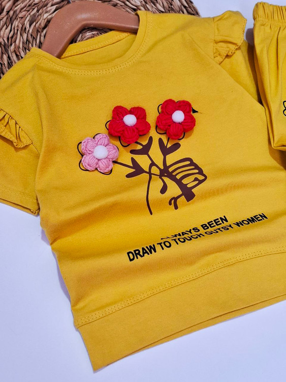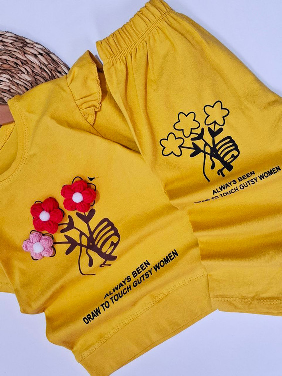 ✅️ست تیشرت شلوارک طرح شکوفه دخترونه