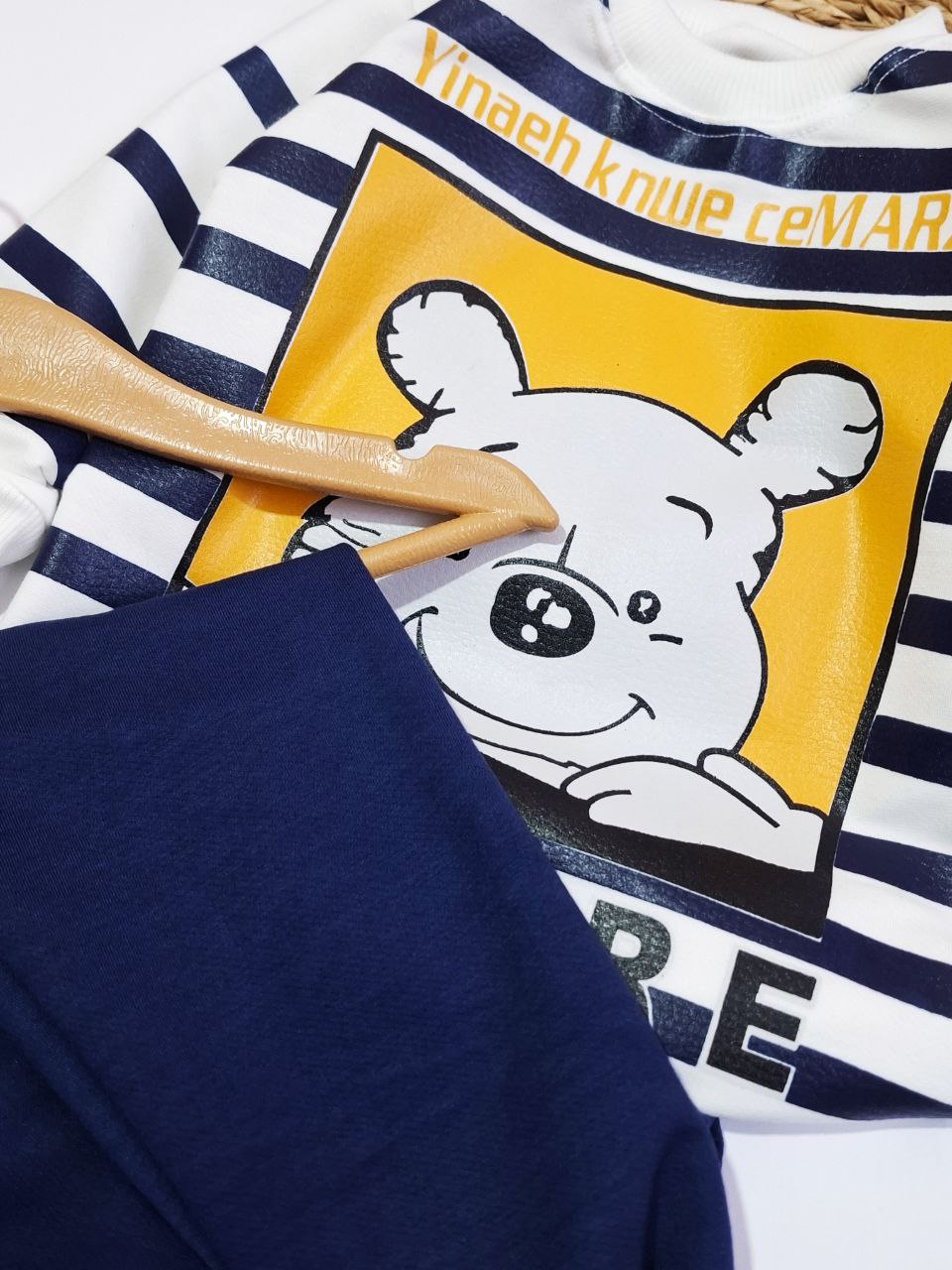 #ست_پسرونه#لباس_بچه#پوشاک_کودک#لباس_پسرانه#ست_بلوز_شلوار_توکرکی#خرس_گوشدار#ست_پاییزه#ست_خرسی_راه_راه