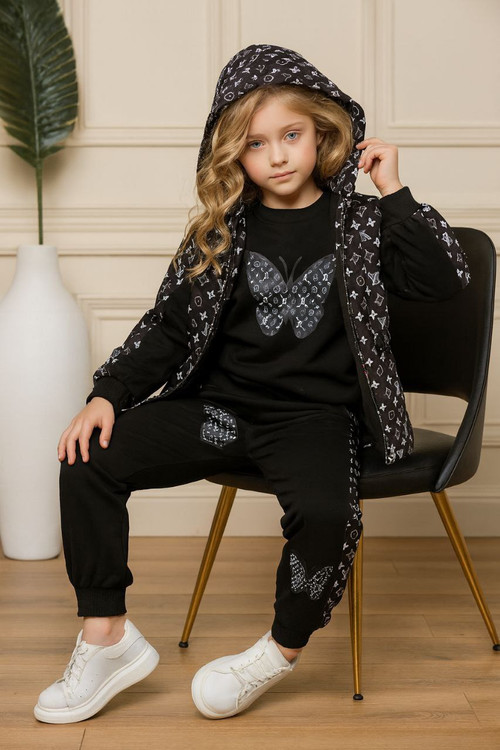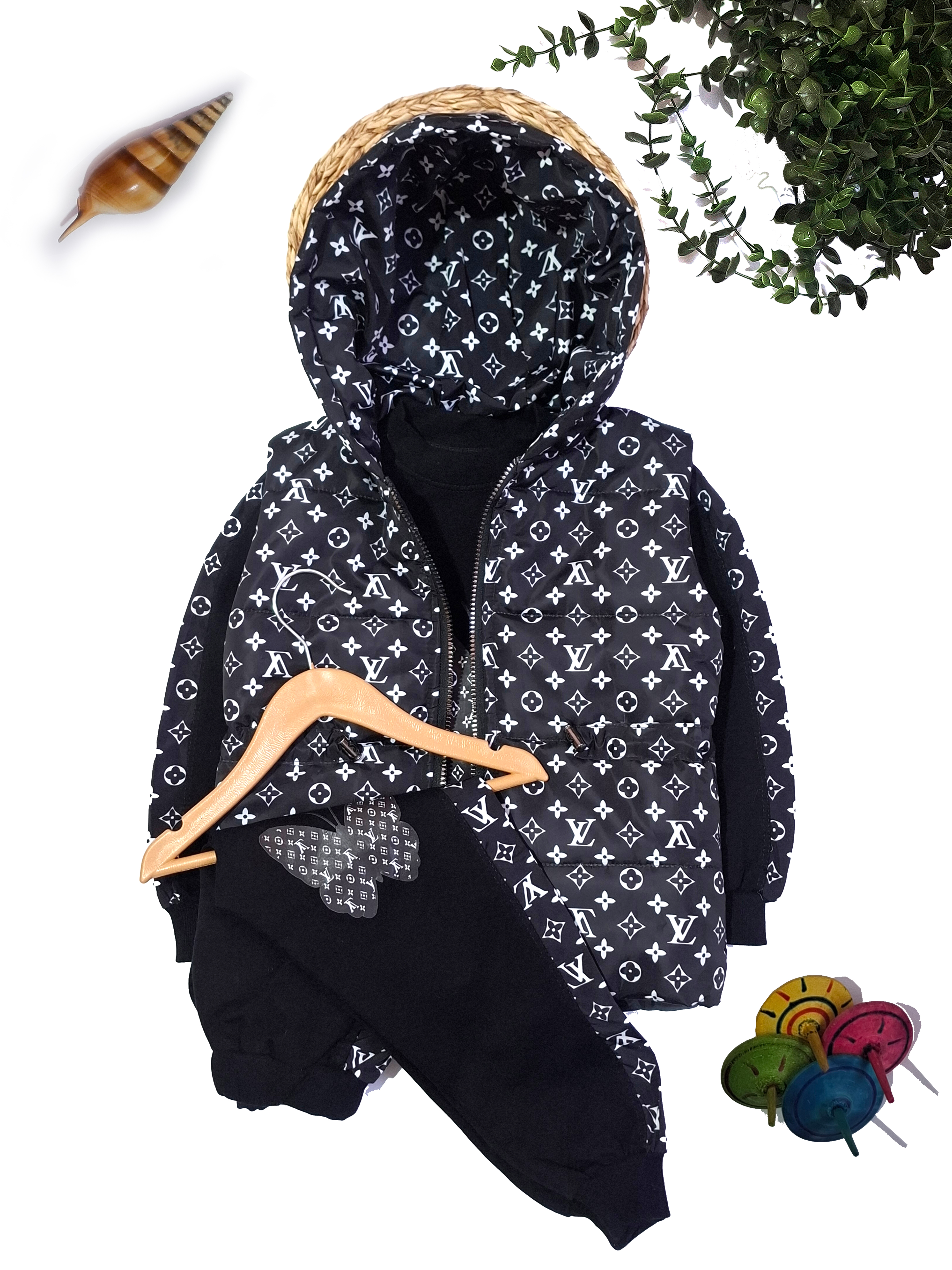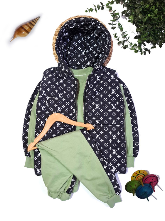 ست بلوز شلوار LV +پافر کلاه دار