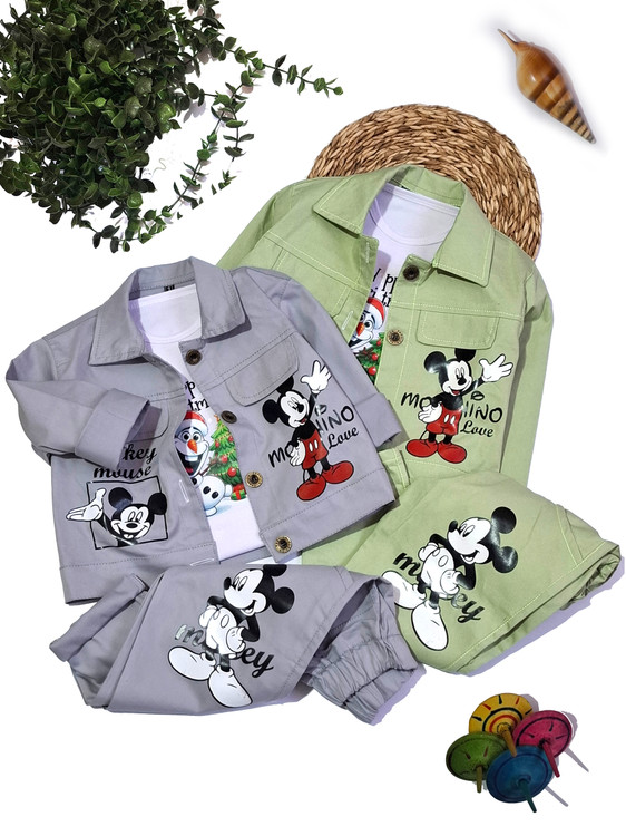 🤨ست سه تیکه کتان میکی موس